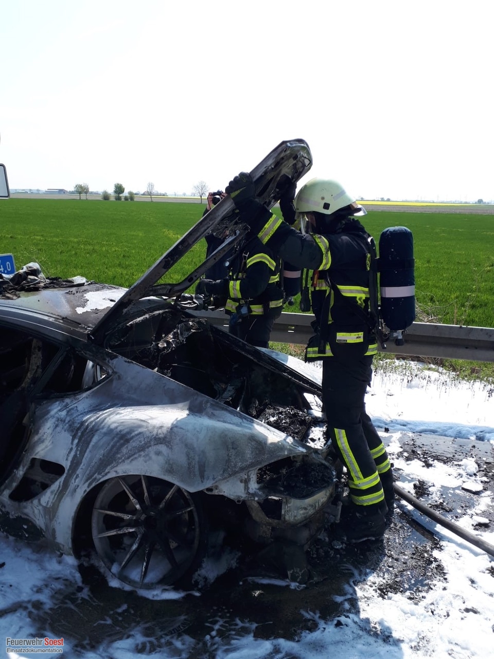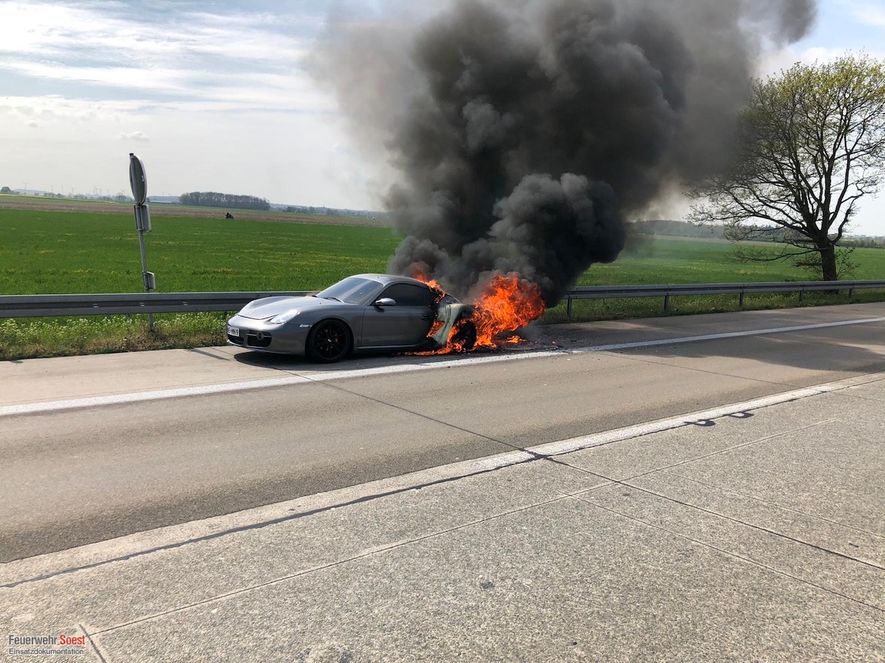 Ein brennender Sportwagen wurde mit einem C-Rohr und Schaummittelbeimischung gelöscht.