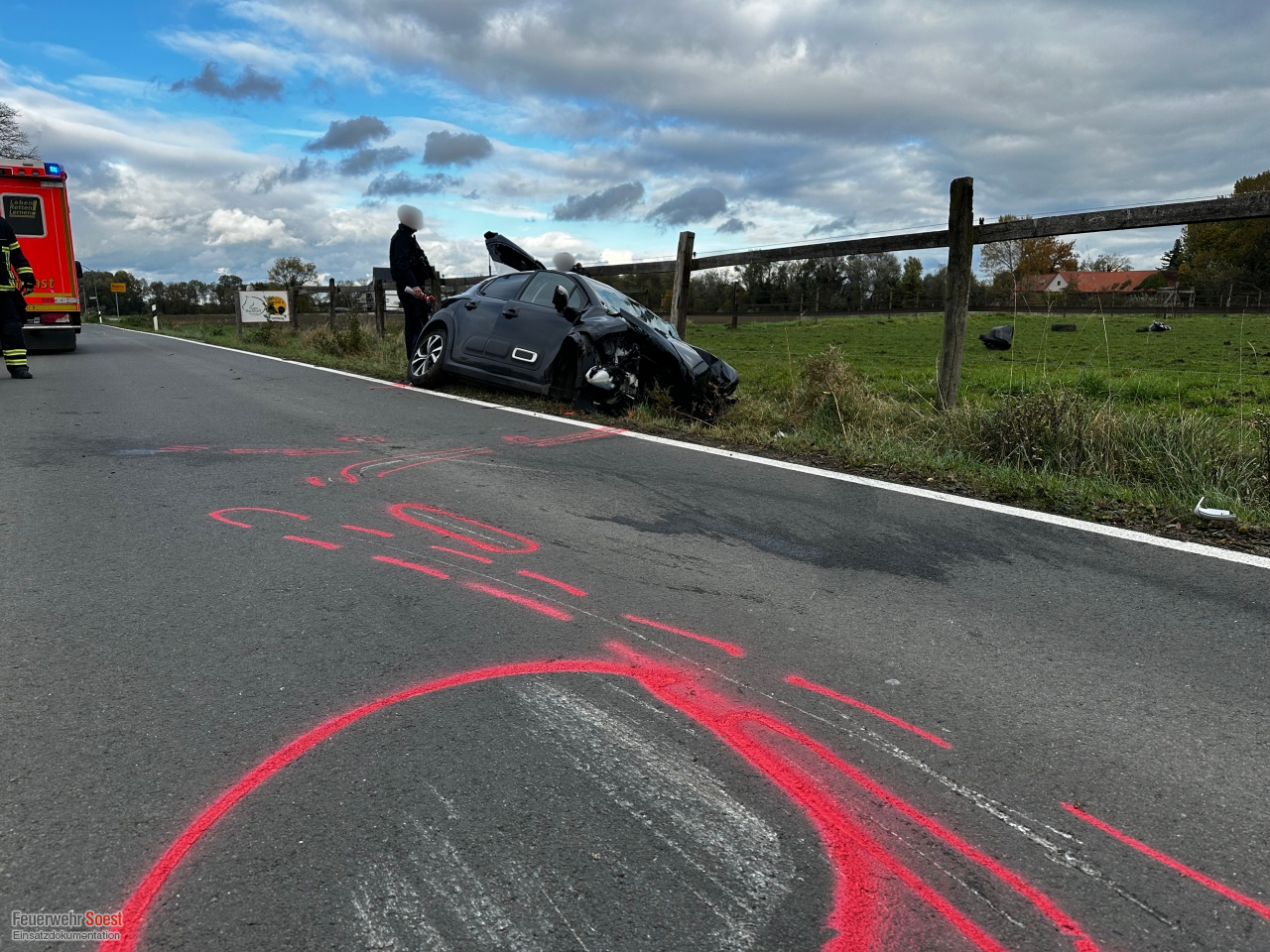 Heute Mittag mussten wir zu einem Verkehrsunfall auf der Schwefer Straße ausrücken. Ein Pkw ist gegen einen Baum gefahren und anschließend im gegenüberliegenden Graben zum Stehen gekommen. Durch die Wucht des Aufpralls wurde der Motorblock aus dem Fahrzeug gerissen. Der Fahrer konnte das Fahrzeug nicht aus eigenen Kräften verlassen. Wir verschafften uns einen Zugang über die Heckklappe. Durch diese konnten wir den Fahrer anschließend auf einer Trage aus dem Fahrzeug befreien und an den Rettungsdienst übergeben.